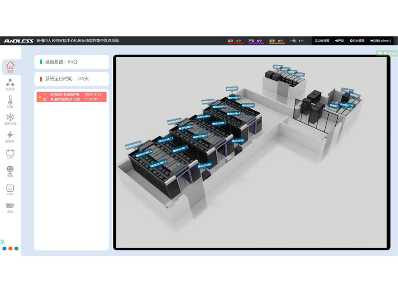 用戶介紹:       該檢察院為江蘇省揚(yáng)州市境內(nèi)的司法機(jī)關(guān)。 解決方案:      近期有幸為江蘇省某市檢察院提供三套安德力士品牌微模塊機(jī)房設(shè)備,涉及系統(tǒng)有:UPS不間斷電源、精密空調(diào)、機(jī)柜、配電、動力環(huán)境監(jiān)控等系統(tǒng);涉及主要設(shè)備有:UPS主機(jī)(30KVA、40KVA、300KVA)、鉛酸蓄電池(100AH64節(jié)、200AH128節(jié)、250AH320節(jié))、精密空調(diào)(行級25KW12臺、基站12.5KW4臺)、機(jī)柜51套,現(xiàn)已全部安裝調(diào)試完成。      微模塊數(shù)據(jù)中心的主要優(yōu)勢      1、快速部署、縮短建設(shè)周期      微模塊數(shù)據(jù)中心加快規(guī)劃與設(shè)計速度,可根據(jù)設(shè)計目標(biāo)以合理的方式配置系統(tǒng)結(jié)構(gòu),微模塊批量生產(chǎn)可以實現(xiàn)現(xiàn)貨供應(yīng),因而提高了交貨速度;標(biāo)準(zhǔn)化的連接方式可減少現(xiàn)場配置與連接的工作量,加快安裝速度;微模塊數(shù)據(jù)中心建設(shè)周期可大大縮短,傳統(tǒng)數(shù)據(jù)中心實施階段需要7-8月,采用微模塊建設(shè)縮短至2-3個月。      2、方便擴(kuò)展、分期建設(shè)      采用微模塊的架構(gòu),數(shù)據(jù)中心可以逐步增加,因而可使從1個微模塊到幾十個微模塊根據(jù)需求分期建設(shè)。微模塊數(shù)據(jù)中心方案顯著降低了數(shù)據(jù)中心在使用壽命期間的成本。      3、標(biāo)準(zhǔn)模塊、穩(wěn)定可靠      微模塊數(shù)據(jù)中心采用模塊化、標(biāo)準(zhǔn)化和高整合設(shè)計,使得整個系統(tǒng)穩(wěn)定度高。同時,微模塊數(shù)據(jù)中心可依據(jù)客戶需求,在電力備援方案上提供N、N+1、2N等配置方案。      4、綠色、節(jié)能          數(shù)據(jù)中心在使用壽命期間的電力成本是TC(總擁有成本)中的一項。相比傳統(tǒng)機(jī)房,微模塊數(shù)據(jù)中心制冷效率提升。微模塊數(shù)據(jù)中心結(jié)合水冷系統(tǒng)、自然冷卻系統(tǒng),PUE降低。      5、智能管理、高效運(yùn)營      智能的管理系統(tǒng)能夠幫助客戶節(jié)能降耗,實現(xiàn)數(shù)據(jù)機(jī)房多層級、精細(xì)化能耗管理,通過多種報表精確定位能源額外損耗點。基于大數(shù)據(jù)分析,輸出節(jié)能優(yōu)化方案,構(gòu)建綠色數(shù)據(jù)機(jī)房。資產(chǎn)管理是對于全網(wǎng)資產(chǎn)的生命周期進(jìn)行管理實現(xiàn)資產(chǎn)信息的閉環(huán)管理,保證數(shù)據(jù)及時刷新,及時管理。同時幫助用戶制定資產(chǎn)維護(hù)計劃,在維護(hù)計劃內(nèi)幫助客戶實現(xiàn)主動預(yù)警,同時可動態(tài)調(diào)整維護(hù)計劃,按照當(dāng)前實際情況輸出優(yōu)化方案,構(gòu)建資產(chǎn)管理功能。